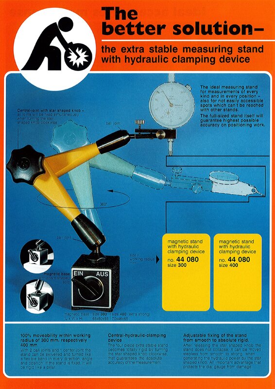 Hydraulikstative von 70 bis 950 mm Aktionsradius sind im Programm verfügbar.