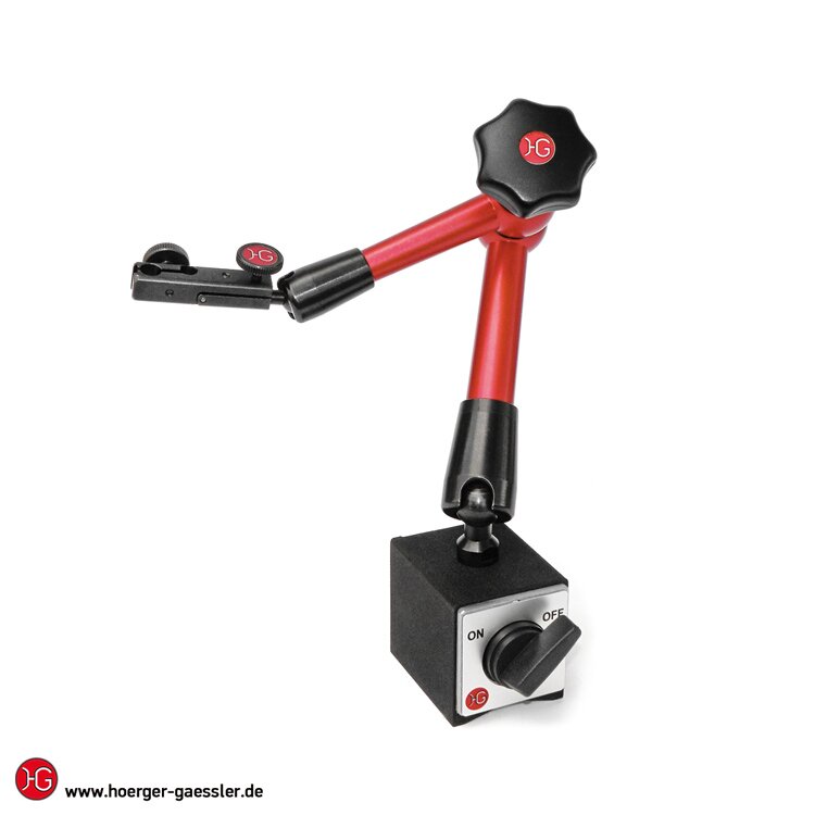 Die mechanischen Stative werden durch Festziehen des Sterngriffs geklemmt. Dabei wird im Inneren des Stativs eine ausgeklügelte Mechanik betätigt, die die einzelnen Gelenke starr verspannt. Die Klemmung erfolgt progressiv, sodass jedes Gelenk der Reihe nach von unten nach oben angesprochen wird, um sehr schnell und komfortabel ausrichten zu können. Der robuste und präzise Aufbau der Mechanik gewährleistet Langlebigkeit und höchste Präzision.